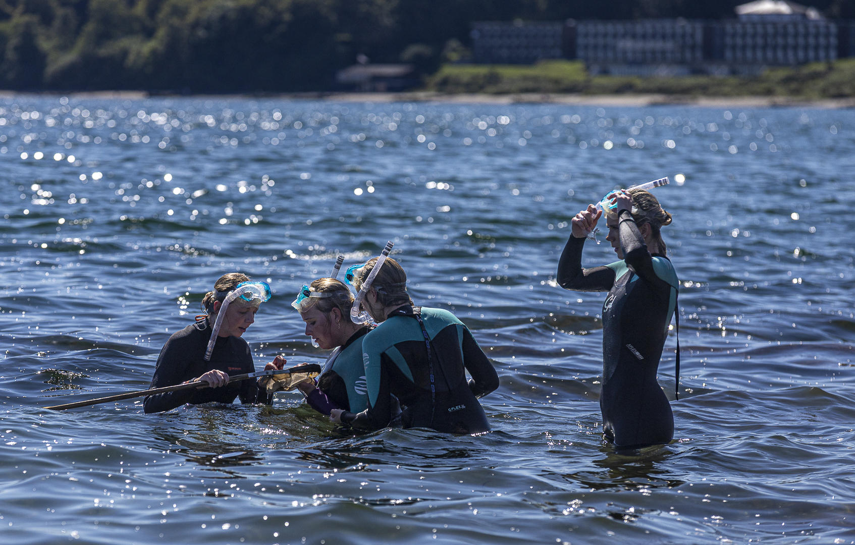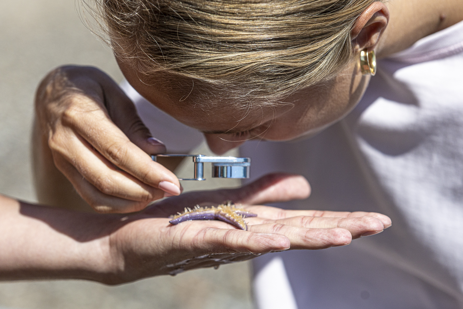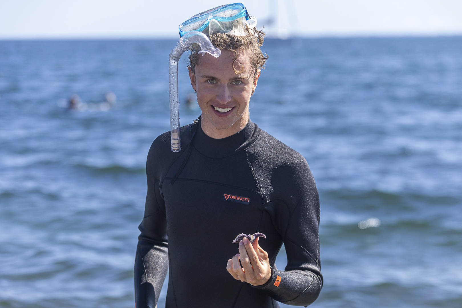 Vejret viste sig fra sin bedste side, og det gjorde eleverne også. Krabber, alger, småfisk og søstjerner blev hentet op fra Århus Bugt og studeret på nærmeste hold, og flere elever mente, de var blevet uforglemmeligt klogere på livet i Århus Bugt.