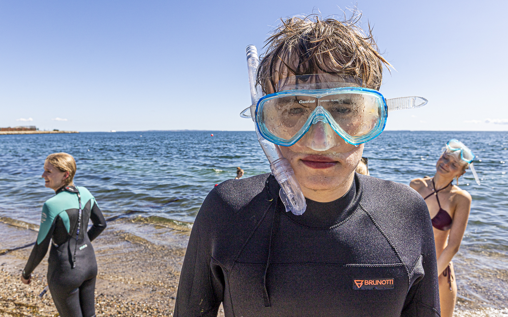 Mandag den 18. august var 3bk2 på ekskursion til Århus Bugt. Eleverne fik iført våddragter og snorkel, hovedet i havet, og mulighed for at undersøge livet under vandet.